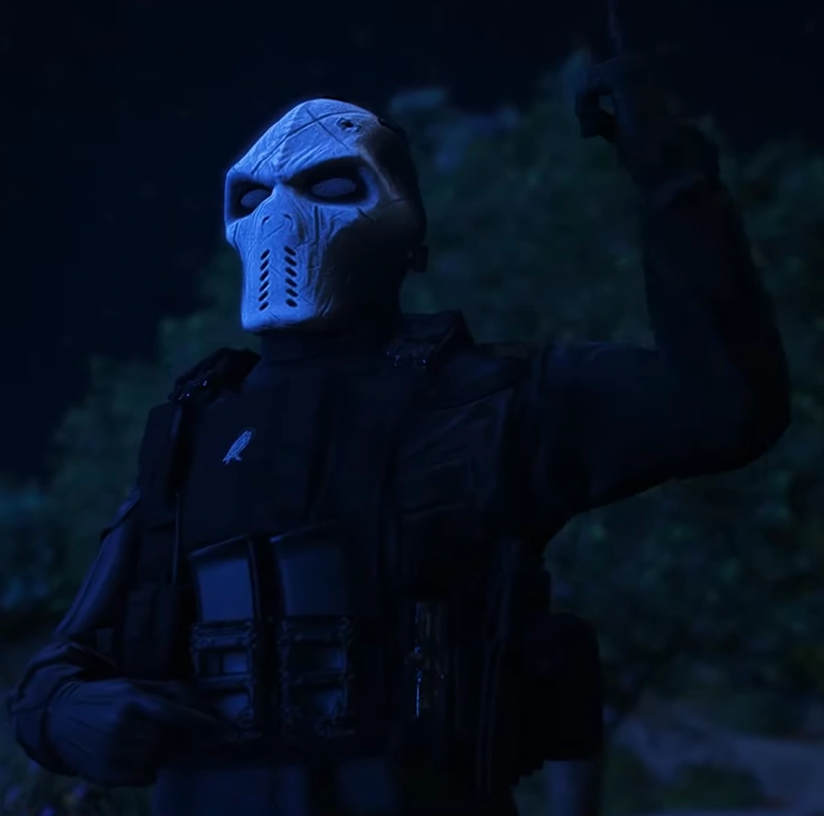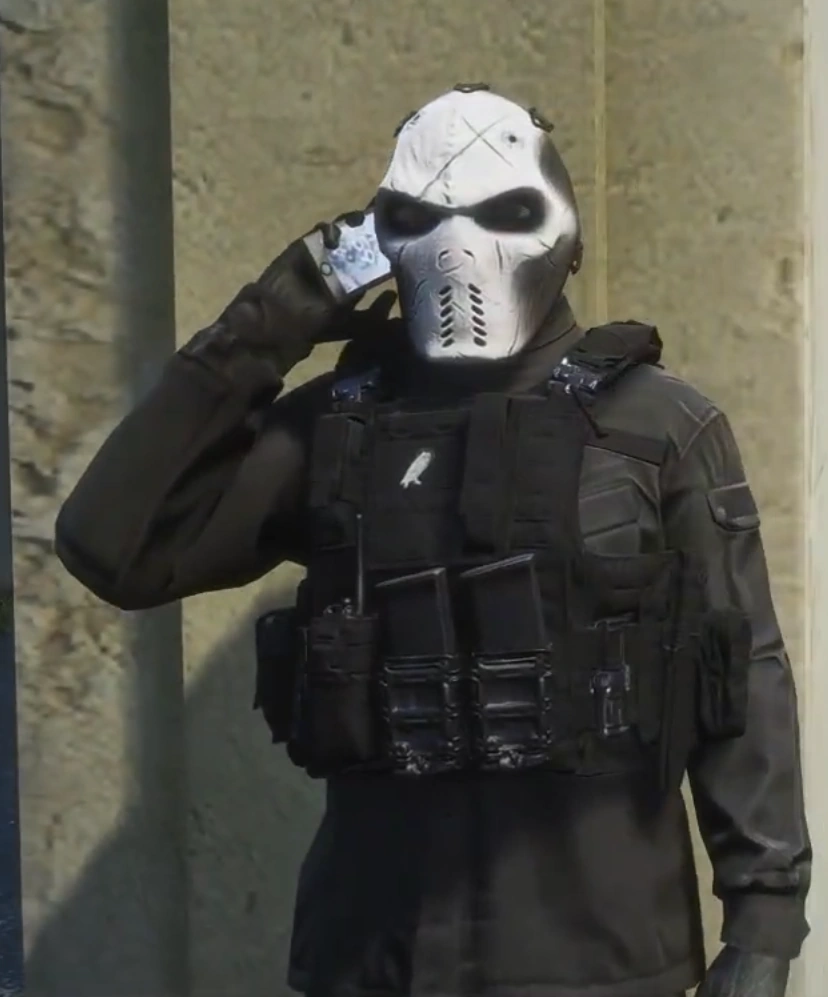 Charlie is always seen wearing a gas mask with a white skull painted over it. He wears a black Kevlar vest over his tactical gear and speaks with a gravely voice filtered through his mask.