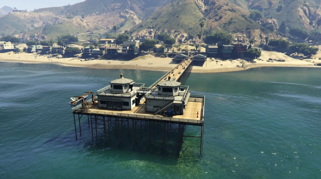 The Chumash Historic Family Pier is located in the heart of Chumash, which is accessible from Barbareno Road. A staple icon of the area, the boardwalk is lined with white fencing. At the end of the pier is the Barracuda Café, a seafood restaurant & bar. Pedestrians can be observed watching the ocean, and seagulls may be spotted resting on the pier.