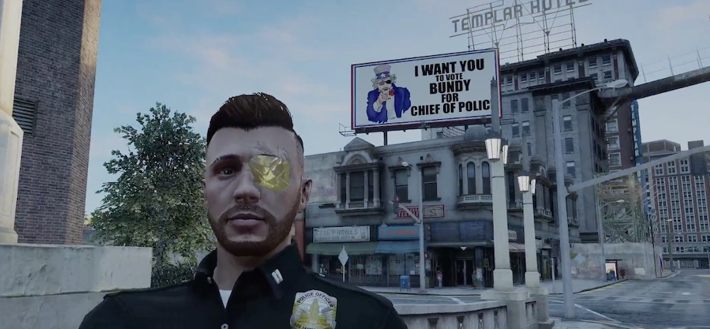 Back in his hometown, Bundy fell further down a dark path and developed an addiction to drugs and alcohol. One day, he awoke and discovered his then girlfriend, dead, in their bed. She had overdosed sometime during the night while Bundy was too high and drunk to have realized or done anything about it. Overcome with grief once again, Bundy decided to turn his life around and later ventured to Los Santos in search of rejoining the police force again. Bundy promised himself he would do better, be better, and strive to be a good and moral Police Officer, like his younger brother once was.