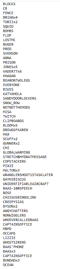High Command: Tessa Lamb Sergeant: Flop Dugong • Jeffrey Bundy Ranger Corporals: Louise Campbell • Lucas Lovesick • Ziggy Buggs Senior Rangers: Ben Casanova • Bryan Davids • Colt Shepherd • Henri King • Honathan Yolo • Richard Tips Ranger 1st Classes: Avery Stone • Birdie Nash • Juno Sweeney • Raycardo Flick • Tommy Melarky Rangers: Audrey Jones • Gregory Johnson • John Mineo • Ka Chao • Luth Rangmore • Octavius Scarpetta • Shawn Maple Ranger Cadets: Loki Skylizard In Memory: #275 Wesley Arnold† |
