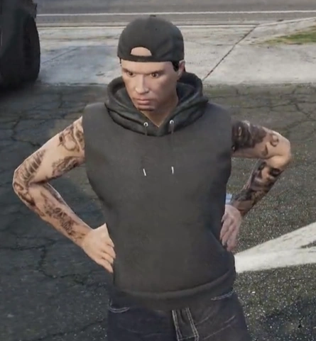 Mike Wadum used to wear yellow-accented clothing due to his former membership with the Vagos, but he wears dark colors like black or gray as he is no longer a member of any gang. He generally wears a tank top and pants with his signature gold demon mask, as he is rarely seen maskless in public.