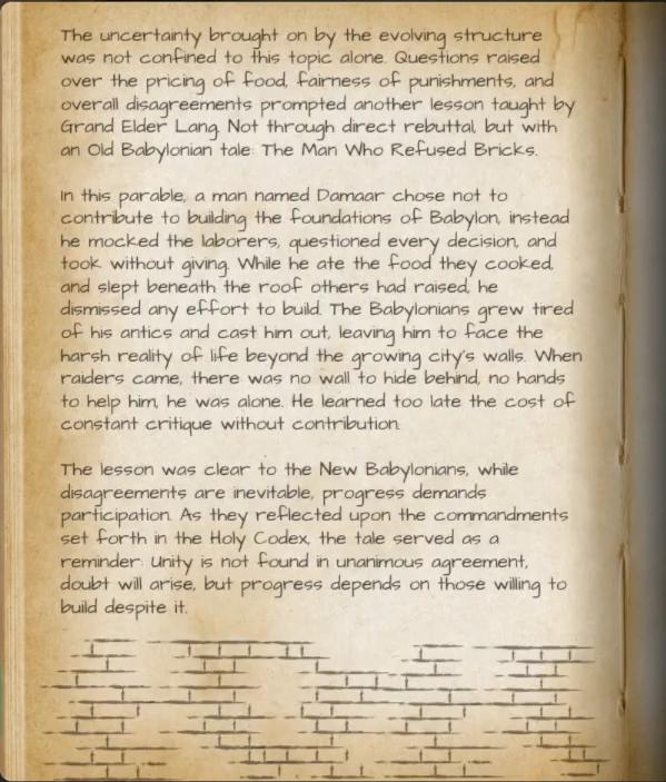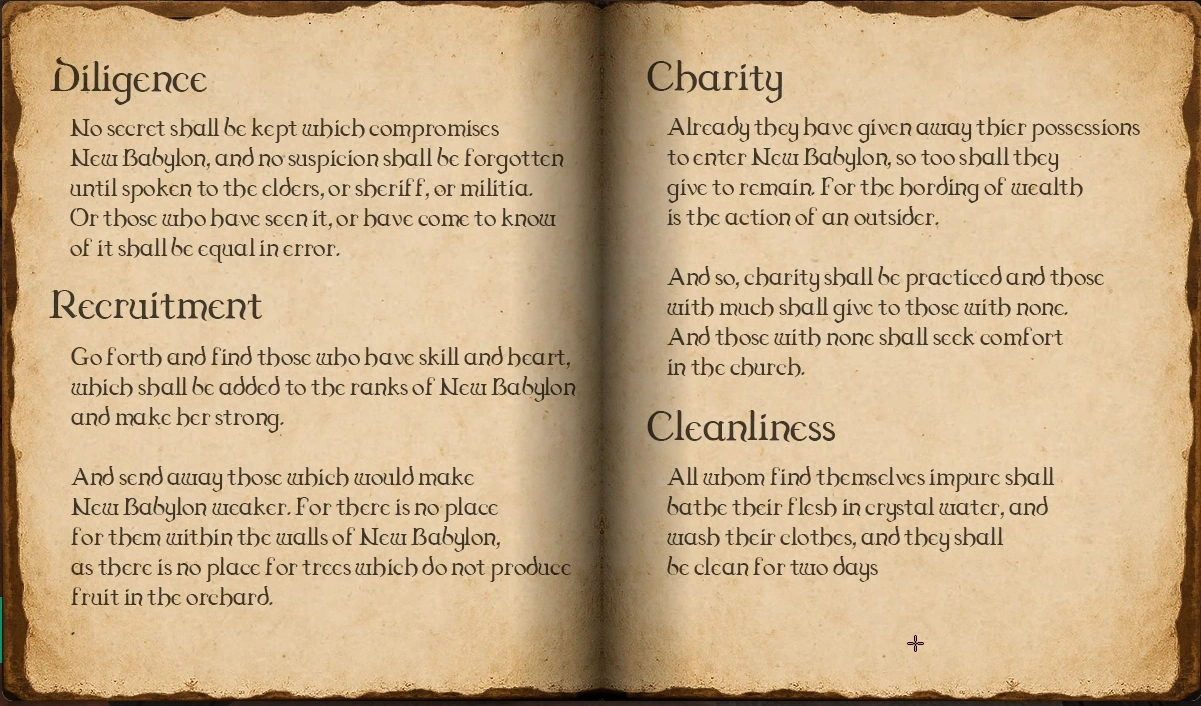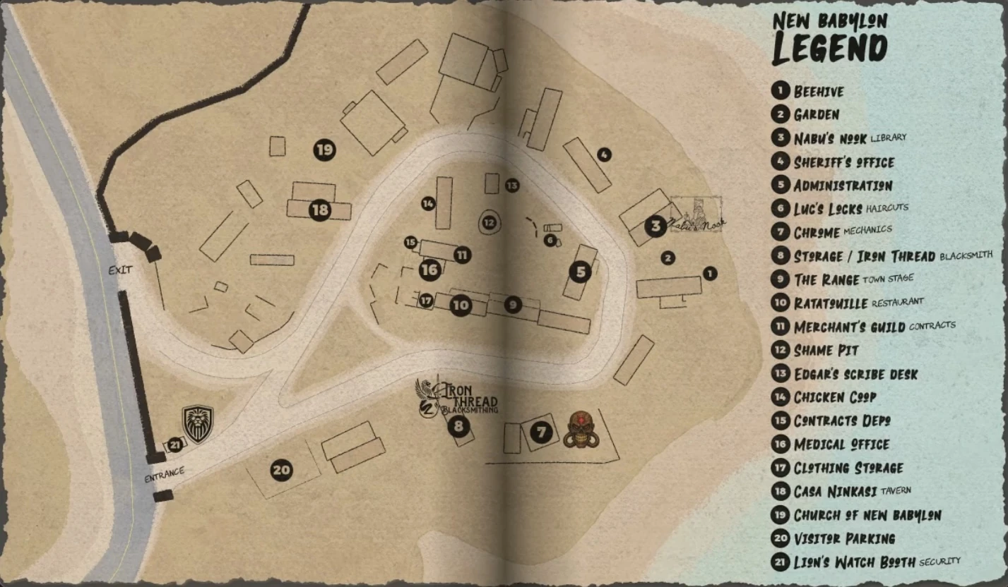 | TBA - Church of New Babylon | Spiritual Guidance and Moral Authority | TBD | None | The church is still to be rebuilt after being burned down after the departure of the heretic Sebas. |