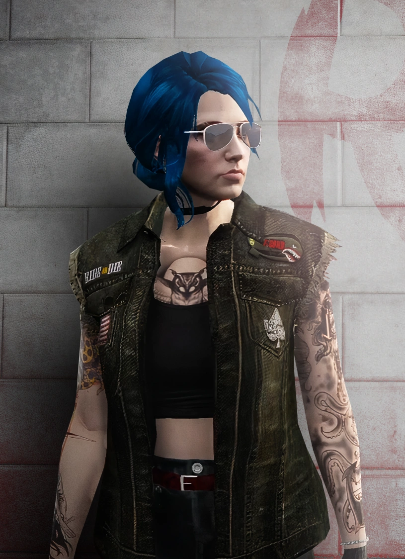Rue Minmi serves as a Patched Member of the Already Dead Motor Club. She is loyal to her friends and often scams others for money. Rue enjoys teaching but can be stubborn on certain topics.