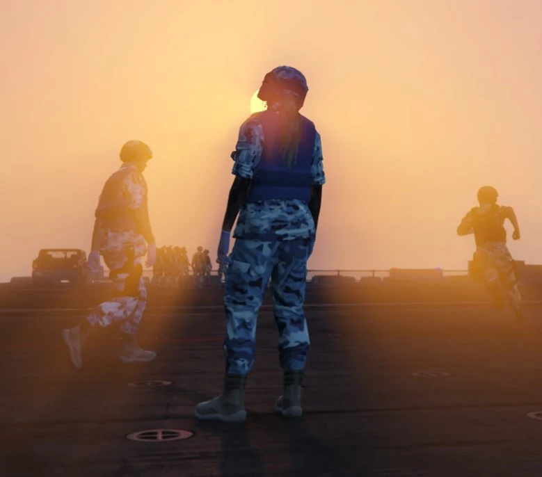 On August 28, 2023, Commissioner Axel Justice, Undersheriff & Commander Connor Stubble, Director Brian Knight, and Senator Sean Davis led the Los Santos PD army's invasion of Sanguine Isle. Per a phone agreement with Commandant Yeager Demonblood, Nicholas Simone had the Russians dogfight with the PD jets in exchange for the Sanguinians not shooting at EMS. The Russians also deployed a Kosatka guided missile submarine during the battle, which ultimately proved inconsequential. Desperate for a mobility scooter, recently fired Ranger Corporal Conan Clarkson defected and joined the Sanguinians.