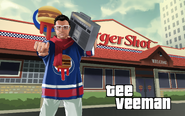 The greying 37 year old is the survivor of a freak mug accident, which changed Tee from a spry up and coming reporter to a more reserved stoner. The perpetrator of the incident was the lead anchor of the news station Tee worked for. The senior newscaster ultimately faced no repercussions for his actions when the news station sent its team of lawyers to court. Tee was unable to win a clear open an shut case and was later fired by the station for what was cited as 'incompetence.' Veeman vowed to fight against corrupt news stations from that day on.